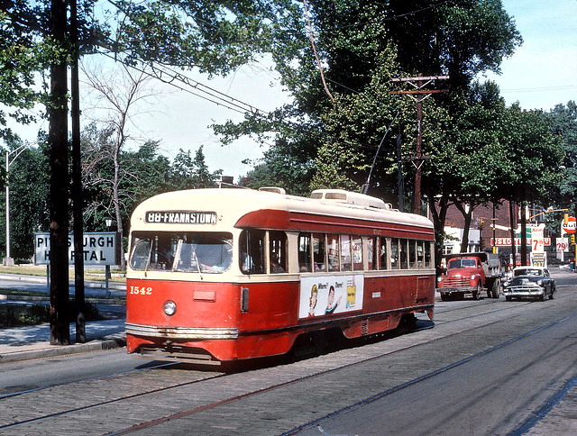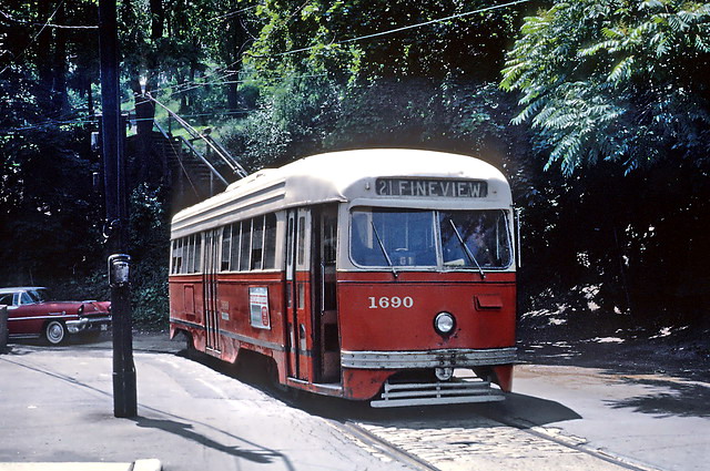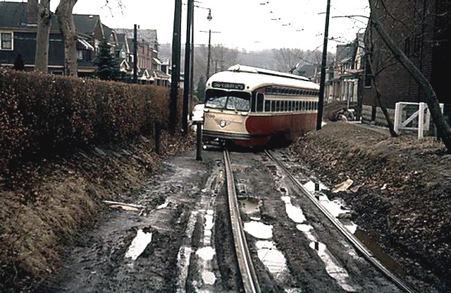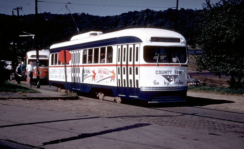 1700 running along Mifflin Rd. I am partial to this car, as It was eventually renumbered to 4009, which was the last PCC I operated on the fantrip when they retired the PCC in the Burg! Here's a few more...