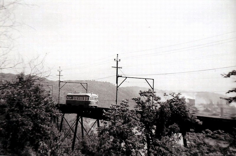 1614 is on the Charleroi interurban line, on a long trestle spanning a hollow.