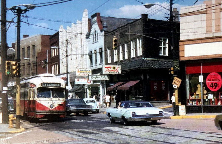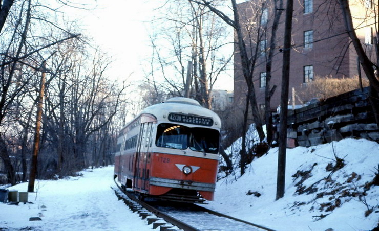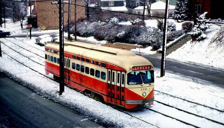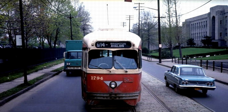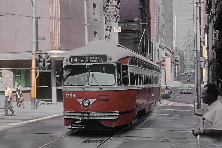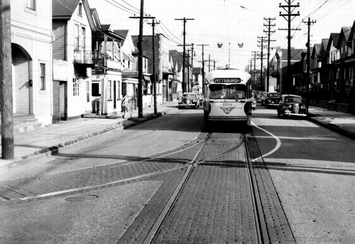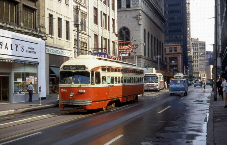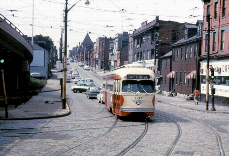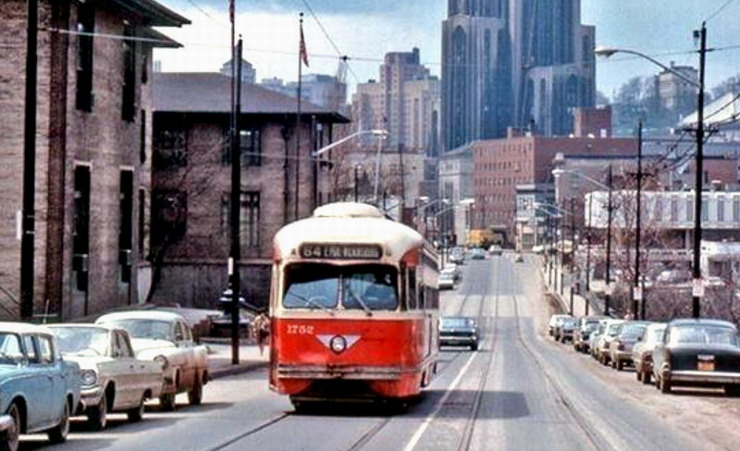 1748 on Forbes Avenue at Brady Street, headed to the carhouse.