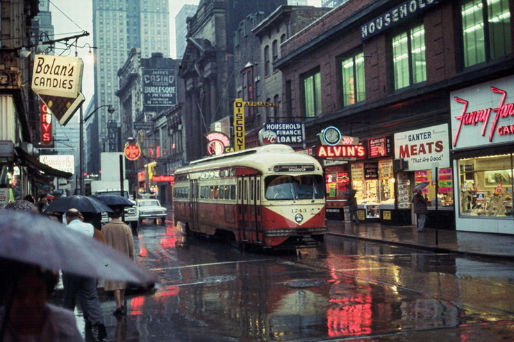 1743 on Wood Street and Forbes Avenue, on a rainy day.