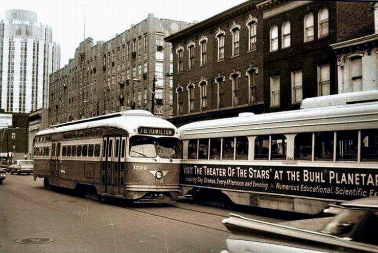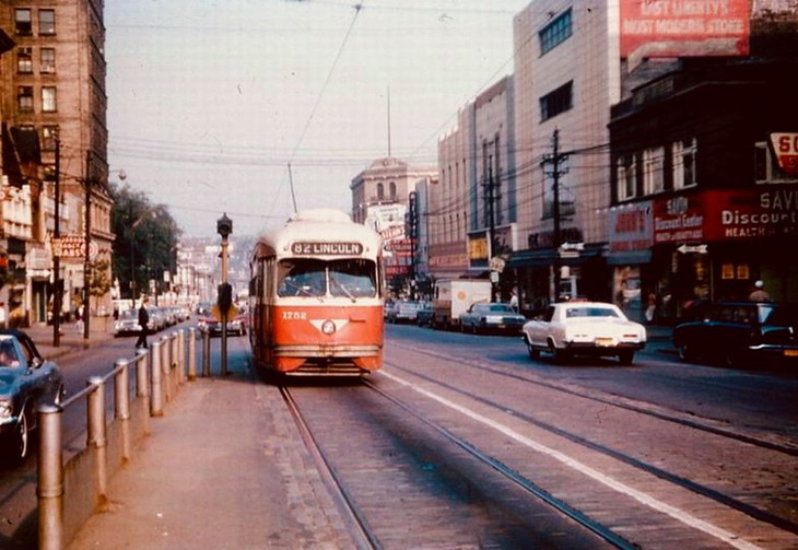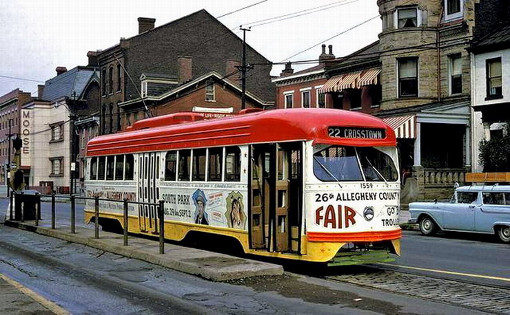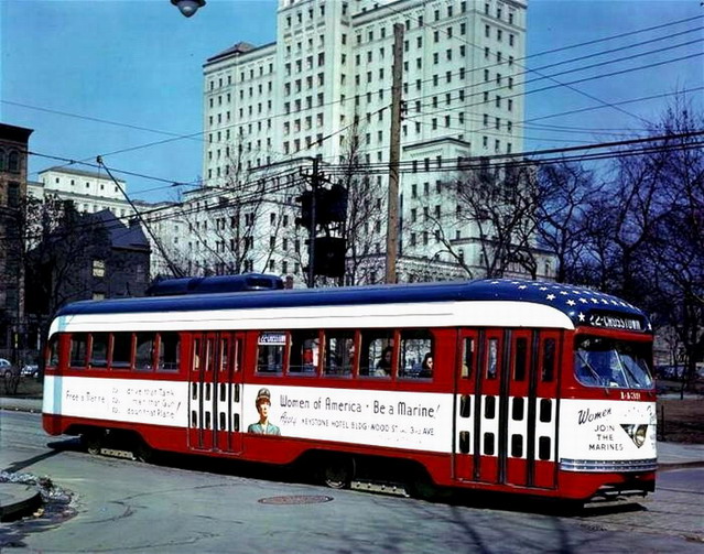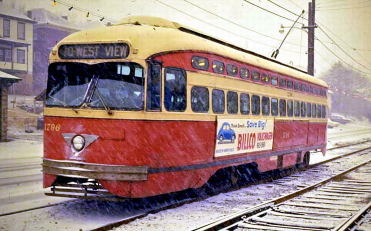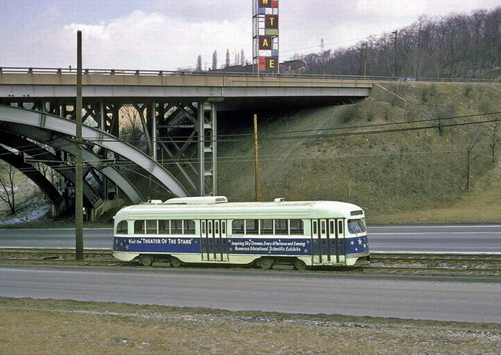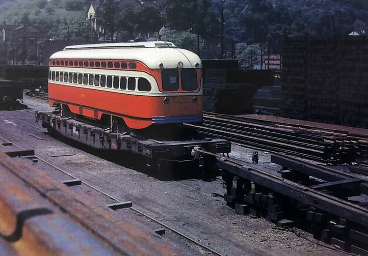 PCC 100... Pittsburghs first PCC. This car later was re-numbered to 1000, then to M11. In the future there will be a page dedictated to this special car.