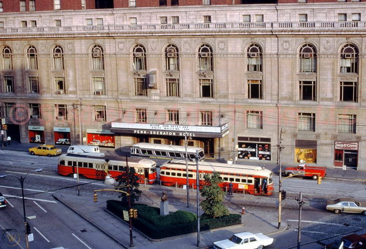 2 PCCs on Grant St in front of the Penn Sheraton Hotel.