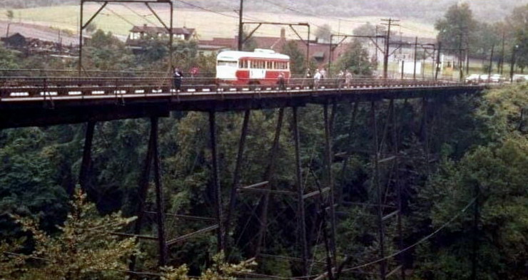 17XX PCC on trestle passing over Dagmar Ave.