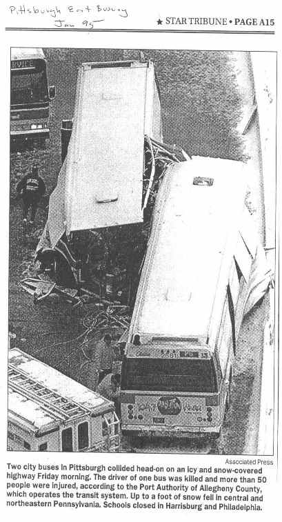 2446 was destroyed when it rear-ended a parked 18-wheeler. 2550 and 2581 were destroyed when they crashed into each other in a January 1996 snowstorm on the East Busway. This accident resulted in the death of the operator of 2581, the termination of the operator of 2550 and many injuries, but no passengers died.