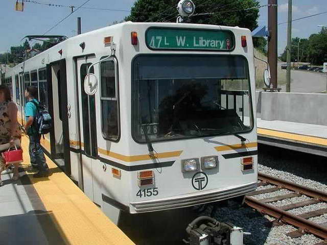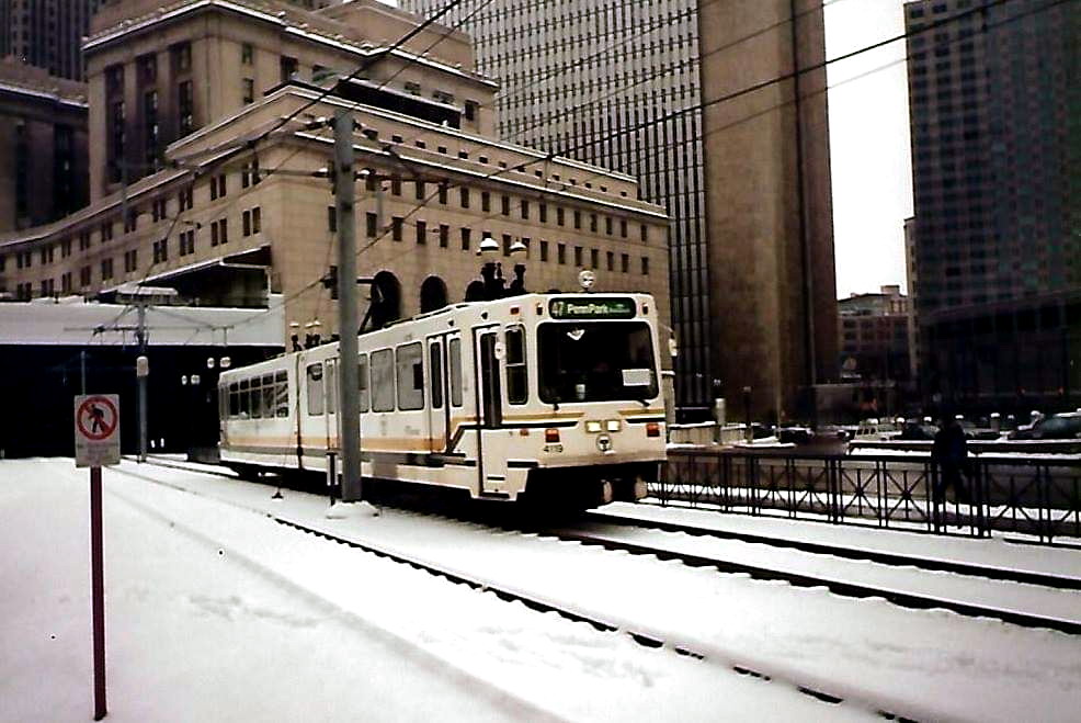 LRV # 4124 at Steel Plaza Station in the downtown subway.