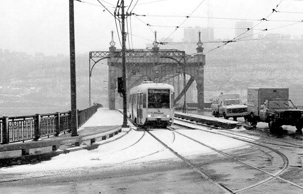 Here it comes off the Smithfield Street Bridge headed to town.