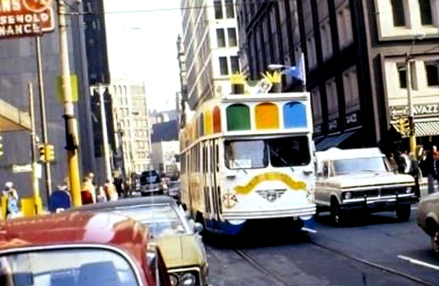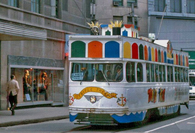 Here's 1976 coming down Grant St. The front was hadcrafted in the Tunnel Carhouse, and there were actually 3 made. This one had more features.