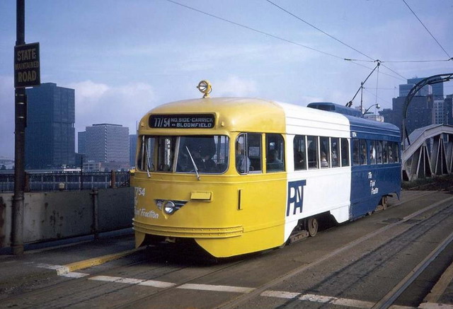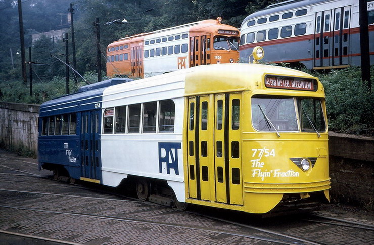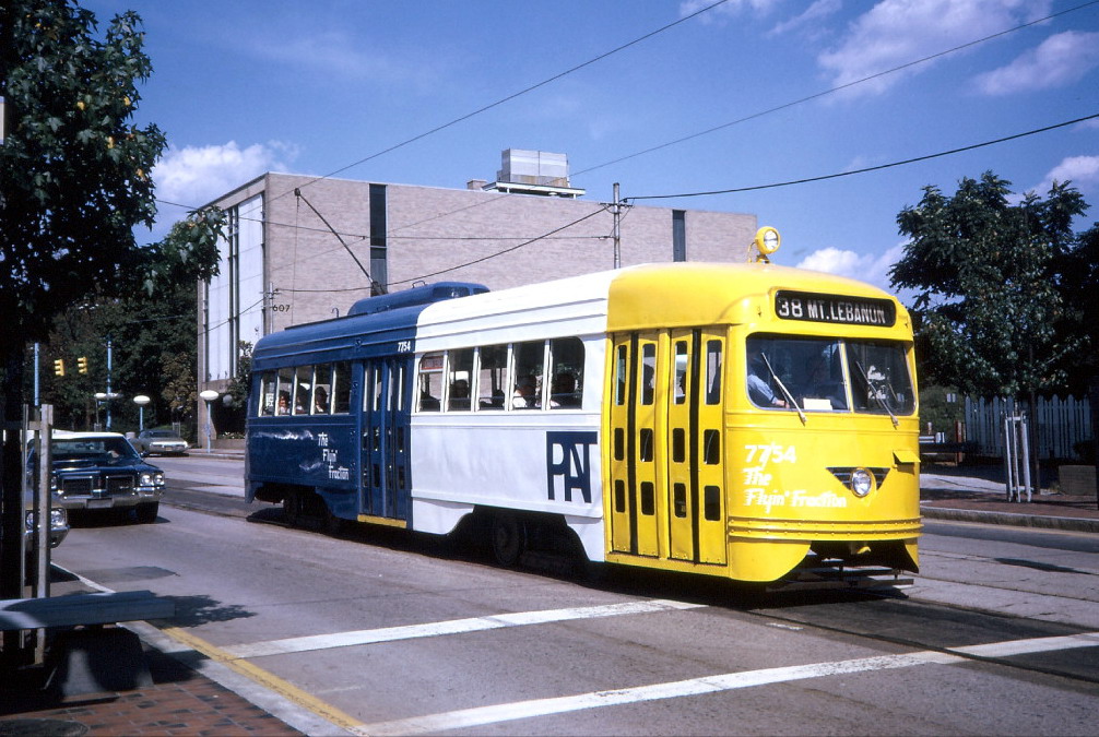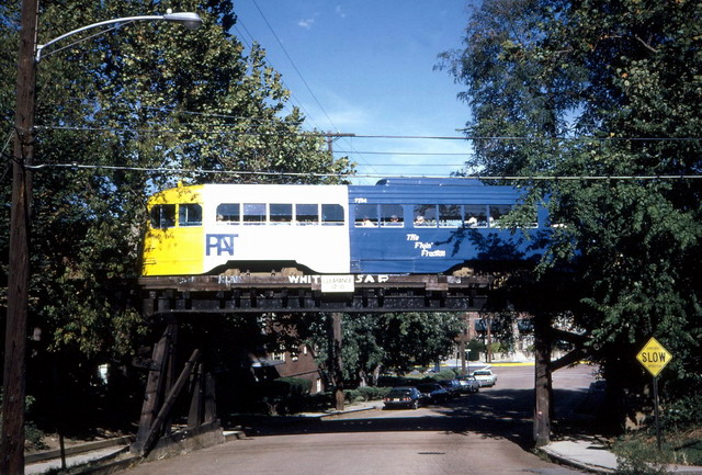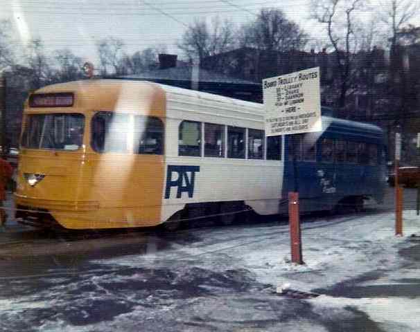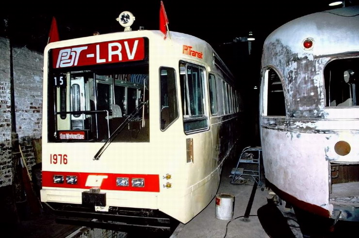 PAT's "Extra Special Car" program where they took three wrecked PCC's and gave them new LRV styling. They were supposed to get flat ends like a LRV and bigger destination signs in the windows, florescent lighting, and air conditioning. Only one of the three ever got all those features, the others just got the flat nose.