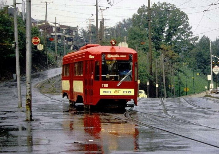 PCC 1976, a experimental LRV style car created in our South Hills Jct shops. These were my favorites. I believe there were 3 made.