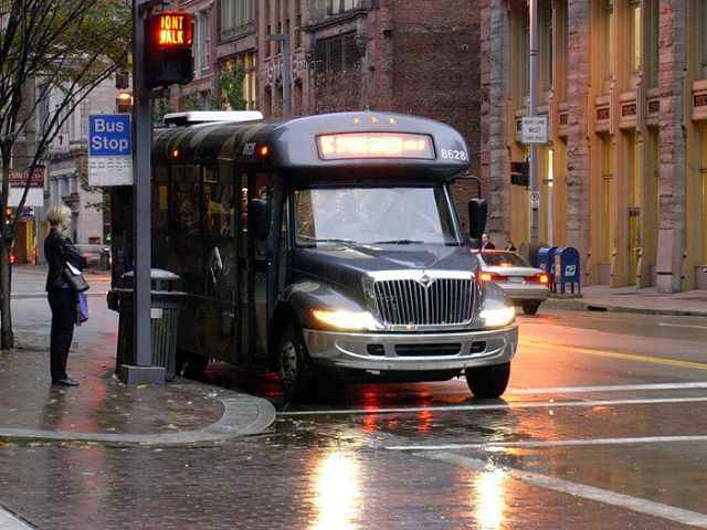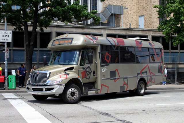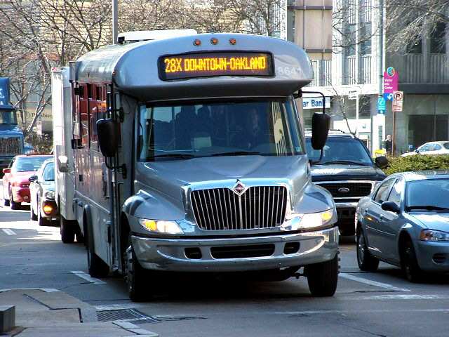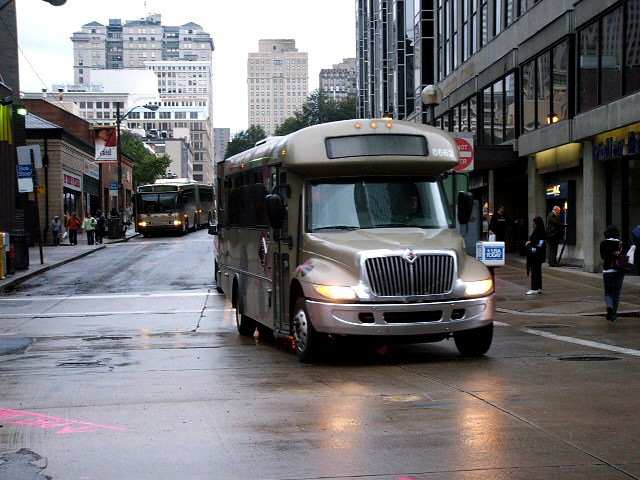 8644 turning onto Liberty Ave, detoured for temporary East Busway construction.