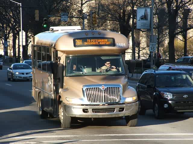 8595 running on the West Busway, heading to Pittsburgh International Airport on Rt 28X.